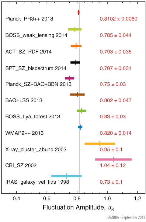 WMAP and Planck data points, is positioned at σ8 = 0.8163.
